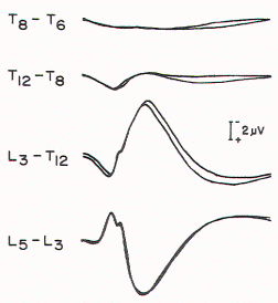 nerve action potential N8 (N5). Electrodes over the lower spine